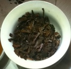 Leaves: This appears to be a ripe Pu’erh with slightly green leaves, looking mostly like a typical Pu’erh tea. The leaves are not compressed. There is a mix of large-leaves and small-leaves.