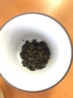 Dry tea visual: loosely rolled small balls, green/brown. Faint sheen on leaves.