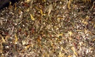 Smells faintly like a prairie in fall. Very light in color, a mixture of dried blossoms, lemongrass and green rooibos.