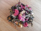 I brewed the tea at 175° for three minutes. I liked that the resulting tea was tinted pink. I don’t know why but I like my tea to have a little color, and white teas usually don’t have much. It was probably the hibiscus turning it pink. Sometimes I think that hibiscus adds too much tartness to blends, but in this case there was a tartness that I felt in the back of my palate, but it tasted more like a fresh raspberry sort of tart rather than just a hibiscus “tart for the sake of being tart” note.