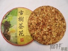 Going to brew this a different way today. I don’t think “Traditional” preparation i.e. gong fu is suited to this tea. It looks like a compressed puerh cake but I think that is the only similarity. The cake is almost sticky when breaking apart. The aroma is a sweet woody scent. I left the chunk I pried off whole as I think it contains many blossoms in it. I prepared this in a clear glass mug with water right at boiling. The flowers open up some. Aroma a sweetish metallic scent. The brew is cloudier this time, darker honey color. Taste is similar to scent. Added some sugar to sweeten it up. Leaves a drying on the front sides of the tongue. I believe this should be steeped a little longer than i did. I think it would classfy as being an herbal tea. A little more bitter as it cools that sweetens at the back of the tongue. It has a bit of grit to me (may be tea pollen). Drinkable in the current state maybe more if brewed properly.