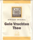 I don’t know what kind of tea this is, other than what Google translates it to – “Yellow Fruit Tea” On searching for “Gele Vructen Thee” and using Google Translate, I found one site that listed it in a box with 4 varieties, and said (in Dutch) “The yellow fruit tea has a refreshing, fruity flavor of lemon, apple and a hint of peppermint.”