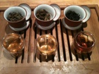 Just one last note. I just received three little red clay and porcelain gaiwans from Dragon Tea House and I love them for comparisons like this one. They are lined with porcelain, which I think is best, but the clay on the outside allows them to hold heat a little better. They are very thin and light. They yield about 60ml of tea, which just fits in most sipping cups. They make me very happy. This whole set up and tea tasting made me very happy.