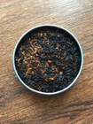 This unique tea was sent to me by Mastress Alita. It’s definitely strong! I first tried it with just sugar, and got a strong taste of rooibos followed by black tea with a whisper of butterscotch underneath. I immediately added milk, and wow that really brought it all together. It tastes caramely and butterscotchy, and you can’t taste the rooibos anymore, it just supports the other flavors. There’s no bitterness. This one is very, very good. I would drink this all the time if I had more!