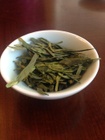 This is a nice, clean tasting dragonwell from a small teashop near my hometown. Mild, marine flavor with notes of peach, allspice, and white grape. It has a strong throat feel and noticeably high caffeine.
