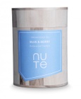 This one is the very evidence of my greed of purchase when I finally bought tea after having forbidden myself to do so until the box of things not yet tried was empty. I already knew it existed. It has been in the back of my mind since someone, I don’t recall who, shared a peach and thyme flavoured tea with me, so I’ve known for a good eight months now that I would buy it eventually and probably sooner rather than later. So when given the opportunity, I immediately took a caddy. It comes in these wooden caddies that are very attractive looking (see the tea photo), but for actual tea storage when the plastic bag inside is opened, fairly useless. I try not to rip the plastic bag, but if that happens, I have to tin it. I then proceeded to the till with my loot and saw NUTE sample satchets. Without thinking, bought two satchets as well. Of the same tea. And only realised this afterwards.