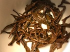 Dry leaves have a sweet cocoa aroma and a large twisted leaf appearance.