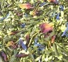 This is a blend of green tea (I believe a sencha), mate, coconut, “flavoring” (smells very strongly of almond extract), rose petals and cornflower blossoms.