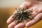 From Annie a while ago, thank you so much for this unique tea! I just plopped a yeti in a mug. I also dumped the loose leaves from the package, that weren’t attached to the yeti to keep steeping in the mug while taking the tied-together piece out after a minute. Not sure if I SHOULD have dumped the broken leaves into the mug, but I don’t like wasting tea! The yeti in general reminds me of a sea urchin! The flavor once you remove the uniqueness of the yeti from the cup, is a sweet, light white tea. Once you sip down the majority of the trichomes (or ahem, the hair of the yeti) in the first steep, the second steep is much smoother, so possibly an initial rinse would also be a good idea. The second steep was even better! Even sweeter, even lighter — I don’t think leaving the few loose leaves in the mug made the tea bitter at all… I should have kept going with more steeps, now that I think about it..