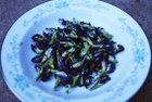 The dry flowers smell, oddly enough, just like brocolli to me, though it doesn’t have a brocolli flavor… it does have a sort of mixed vegetable kind of taste, though. The flavor of the tea is best described as a mild earthy, herbaceous, vegetal sort of taste; I tried a chrysanthemum white tea not long ago, and found chrysanthemum to have a somewhat similar flavor to butterfly pea flower, only butterfly pea flower isn’t as sweet as the chrysanthemum, and has a stronger vegetal note. I actually really enjoy this tisane now (ah, how a palate can change over a year…). I do still like the taste of it with citrus added though, as it just compliments it really nicely, so I usually add a teaspoon of my lemon-infused honey (or, if I’m out, simply add equal parts lemon juice and honey). The odd thing is while the tea did change purple when I first got it a year ago, it doesn’t anymore. Since it’s just pH levels that cause that, you wouldn’t think the age of the tea should make any difference, but there you have it. Now that my flowers are older, my tea always stays blue, even when I add citrus and make the tea more acidic. Strange, no?